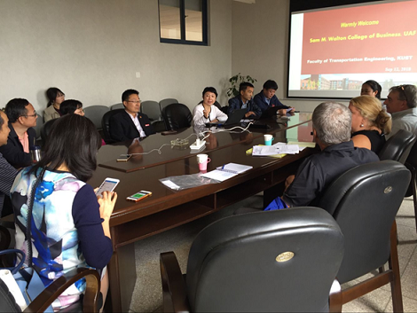 ,与交通工程系教务教学管理人员、物流工程系的部分骨干教师进行了座谈,双方就阿肯色大学(费耶特维尔)山姆沃顿商学院提供的外方课程及其教学安排等交换意见,对为2018级物流工程(中外合作办学)班的同学开设好课程达成共识。