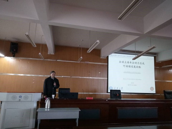 100余名师生作了一场题为“全球主要车企动力总成可持续发展战略”的学术报告。