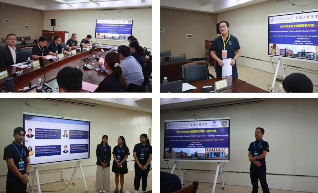 对远道而来的学员表示热烈欢迎。他在致辞中指出,此次活动将以“课程教学、实地参访、专题研讨”的方式让学员们深入了解和研讨未来交通领域的前沿理论与技术,希望学员们能够充分利用此次机会,深入交流专业知识,碰撞创新思想,增进彼此的了解并加深友谊。国际学院负责人对全体学员表示热烈欢迎,并介绍了学校国际化办学特色及教育合作成果。随后,学员们依次进行了自我介绍,并进行了热烈的交流讨论。