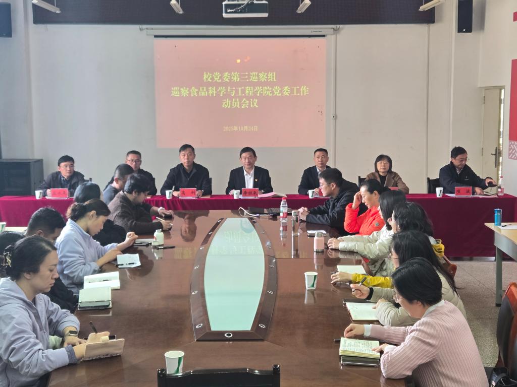 党委、食品科学与工程学院党委等6个党组织开展巡察。进驻当天,各巡察组分别在被巡察单位召开了巡察见面沟通会和进驻动员会。校党委副书记蔡金红,校党委常委、副校长蒋业华、潘学军、李祖来分别出席6个被巡察单位相关会议。