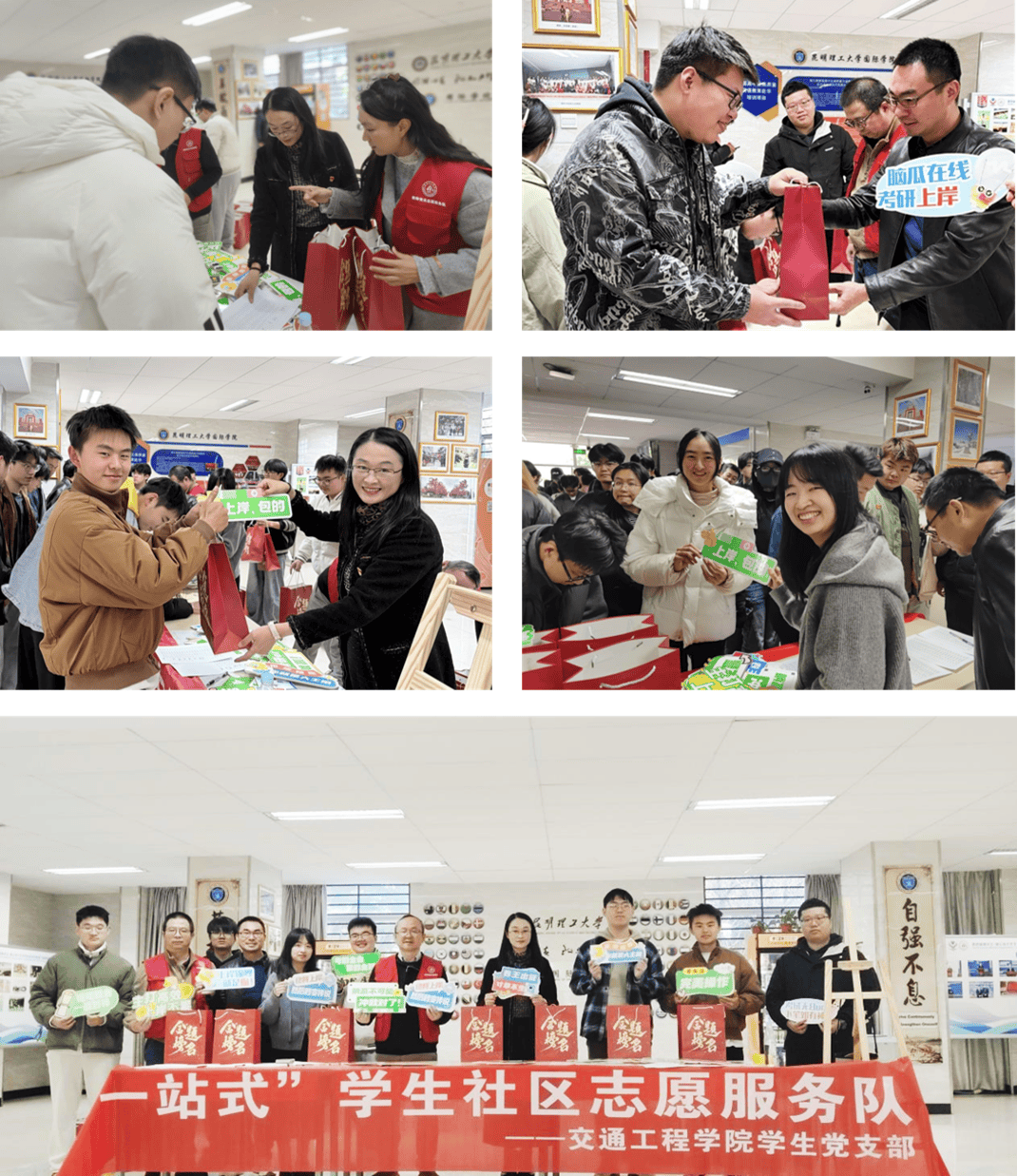 活动现场,赵佳副书记与考研学子亲切交流,详细询问大家的复习进度和生活情况,鼓励同学们在最后冲刺阶段保持良好心态、科学备考、劳逸结合。老师们为每位考研学子送上精心准备的加油福袋,福袋内包含考试文具、暖身贴、巧克力等实用物品,承载着学院对学子的深切关怀和美好祝愿。