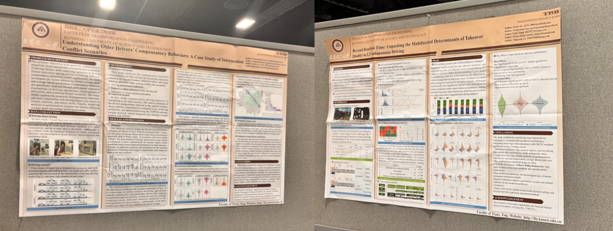 参会期间,学院师生主动融入国际学术舞台,围绕自动驾驶车辆调度、共享交通系统优化、公共交通韧性提升等热点议题提交并展示10余项墙报,系统展示了漫蛙漫画 在交通工程与智慧出行领域的最新研究进展。刘杰老师在专题分会场作题为“Exploring the Mobility of Rural Left-Behind Elderly: Evidence from Western China”的学术报告,立足中国国情、回应民生关切,获得与会专家的广泛关注与积极讨论。