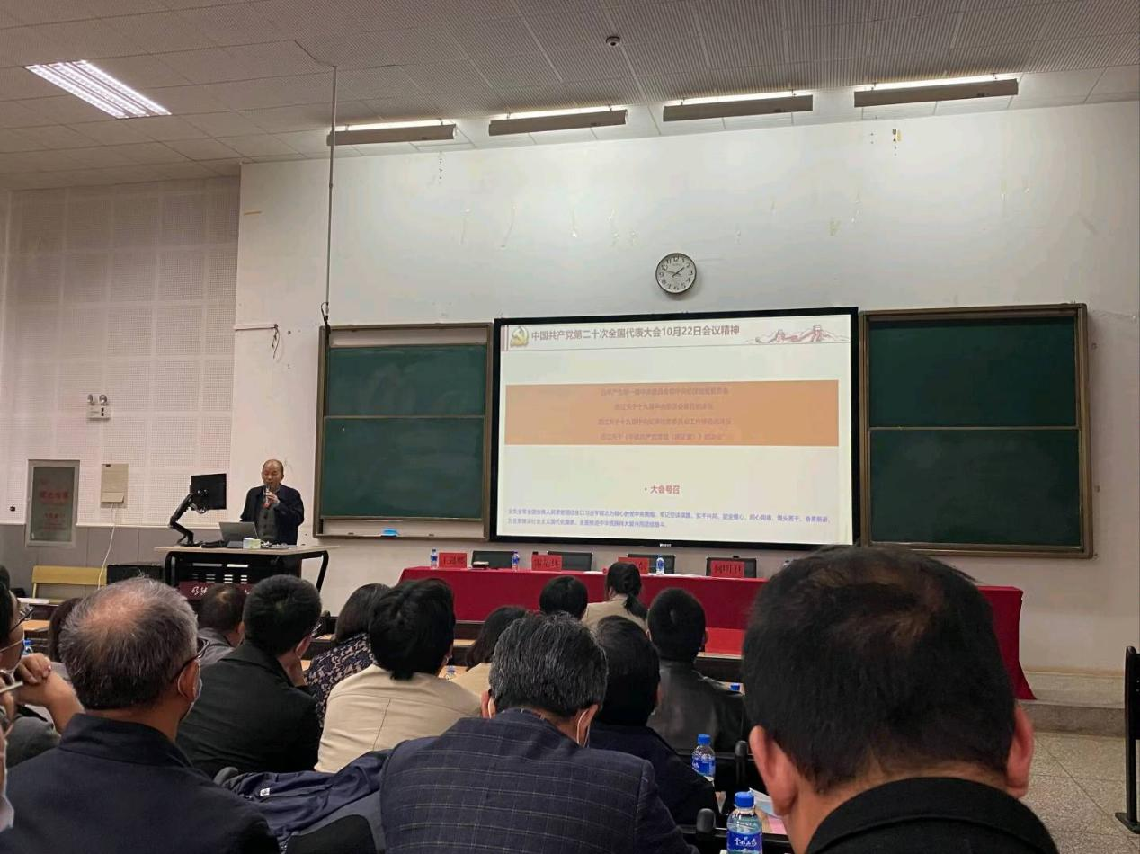 形成生动实践;坚持走在前列,掀起学习宣传贯彻党的二十大精神热潮三个方面对党的二十大精神作了全面宣讲和深入阐释,并号召青年们把思想和行动统一到党的二十大会议精神上来。
