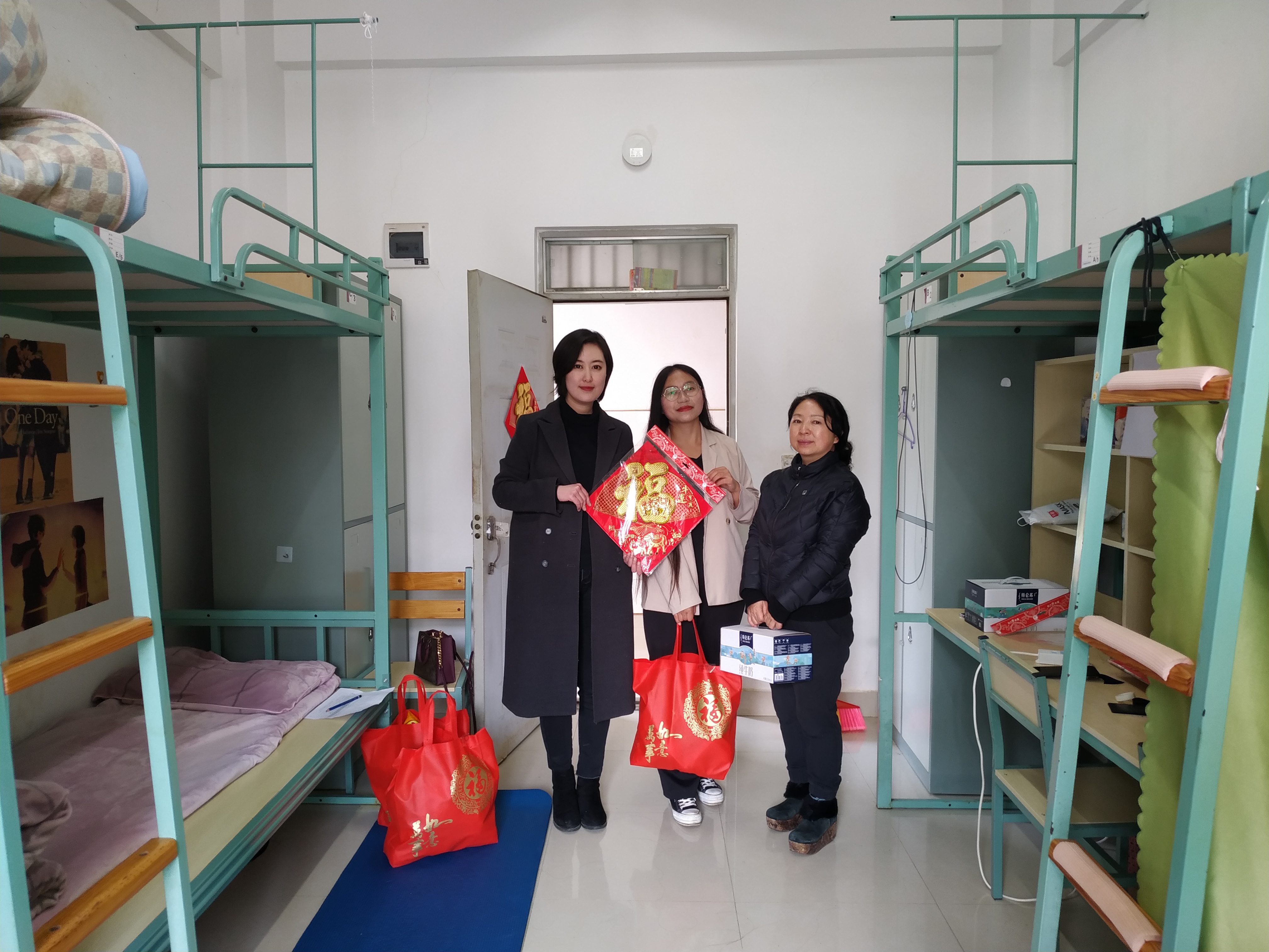 院领导分别来到学生公寓和研究生工作室看望学院留校学生,了解同学们的近期生活、学习情况,为同学们送上新春祝福和新年礼包。