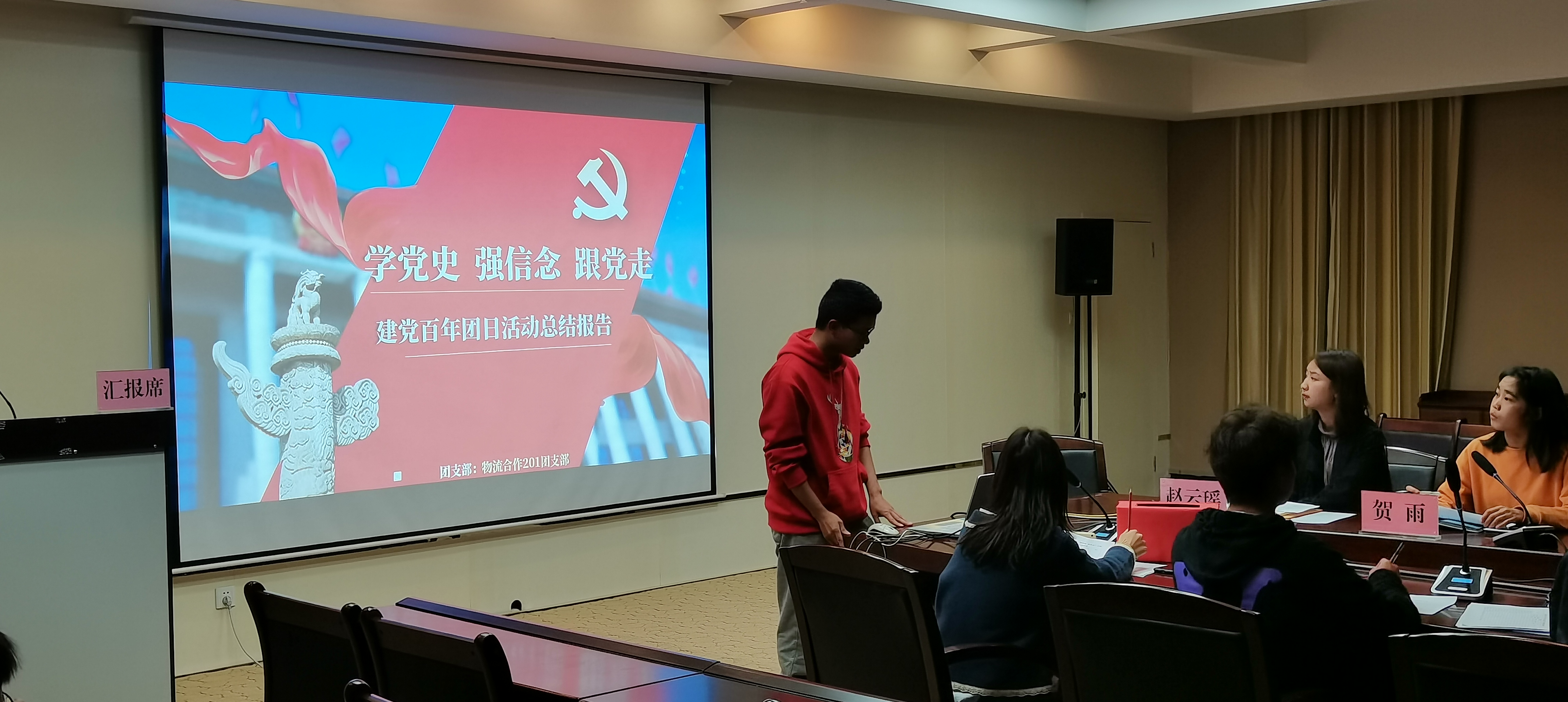 在交通楼A308举行了“学党史、强信念、跟党走”主题团日活动院级评选活动,学院团委老师赵云瑶、团学骨干、团支书参与此次评比。