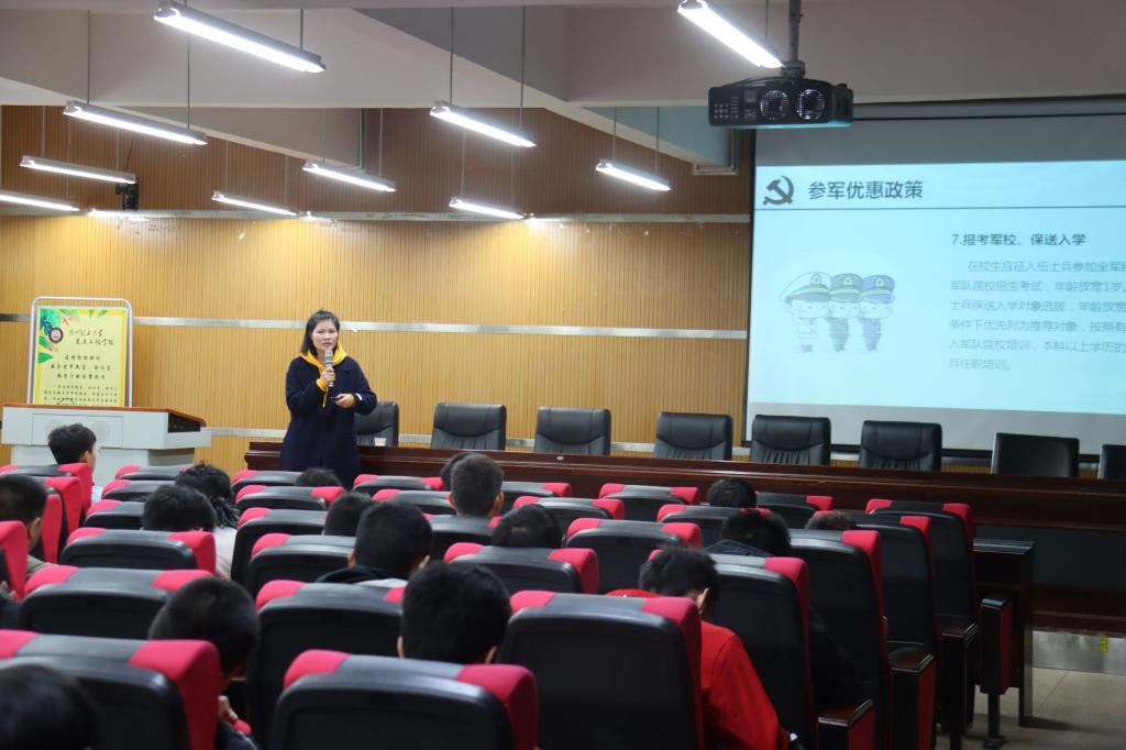 学工办征兵工作负责人李春梅老师、徐恩慧老师以及160余名本科生参加本次宣讲。