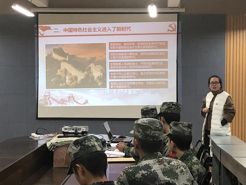 团委负责人晁洁老师为国防生团支部党在交通楼B403开以“十九大 新时代 新征程 新目标”为主题的团课。首先,团委负责人晁洁老师介绍了十九大的会议主题“不忘初心,牢记使命,高举中国特色社会主义伟大旗帜,决胜全面建成小康社会,夺取新时代中国特色社会主义伟大胜利,为实现中华民族伟大复兴中国梦不懈奋斗。”????