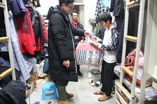 首先走访的是女生宿舍,每到一个宿舍,学院领导都与新生们亲切交谈,详细询问同学们入学后的学习和生活状况,并为他们送上床上三件套和毛毯并仔细查看宿舍的各种设施是否完善。学院领导表示,学院会尽一切力量为同学们创造良好的学习和生活环境,希望同学们能尽快完成角色转变,适应大学生活,并对未来做出合理规划。来自不同地区的同学们,要互相理解、互相宽容、互相帮助,建立良好的宿舍关系。
