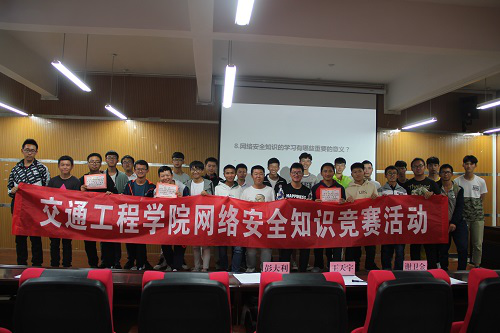 “网络安全知识竞赛”在交通楼A402顺利举行。本次竞赛的主席团为交通院学工办主任王懿娜,2018级辅导员寸议鹏、团委副书记唐佳桃、学生会主席王天宇、副主席谢卫金和彭大利。参与此次竞赛的八支队伍来自于交通院各个年级,每个队伍由三名队员组成,各个队员都激情饱满。