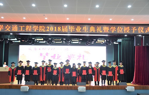 典礼分为两个阶段,第一阶段议程开始,首先是主持人张强老师介绍到会人员,台下全体毕业生以激烈的掌声与热情的呼声欢迎老师的到来。接下来是雷基林院长对毕业生寄语,雷基林院长首先祝贺2018届毕业生顺利毕业,接着提出对全体毕业生的殷切希望及祝福,但流露出的更多是满满的回忆与不舍之情。紧接着是教师代表陈峥老师的发言和毕业生代表谢世坤的发言。最后主持人宣布优秀毕业生名单并颁奖,第一阶段议程在掌声中结束。第二阶段议程伊始,秦雅琴副院长宣布获得学位同学名单,接着学位分委员会授予学位,全体毕业生井然有序的上台接受老师们授予的学位证书,与老师们握手,拥抱,那一幕幕是多么的温馨,同学们手拿学位证书的喜悦溢于言表。最后,寸议鹏老师进行了毕业总结,主持人宣布会议结束。