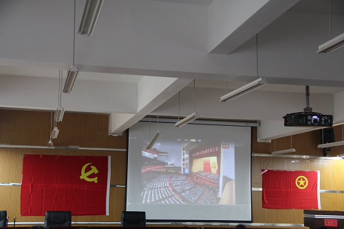 的各届团委学生会的中高层干部及其他广大青年学生在交通楼A座402观看了中国共产党第十九次全国代表大会盛况。此次观看由学院组织部负责,学院团委组织部应学校要求,组织主要团学干部观看十九大视频。