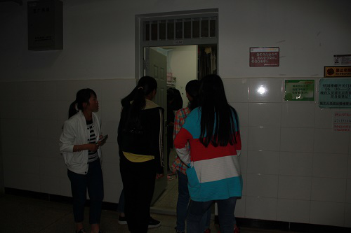 恬园女生宿舍11幢楼下集合,帮助化工院和生科院的同学走访交通院学生宿舍进行全国千校千项的评选。