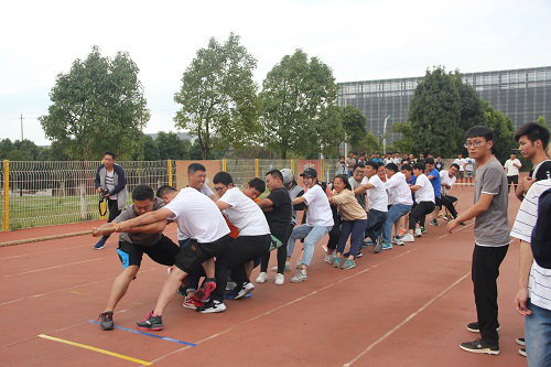 的同学们气势磅礴,展开了一场与建筑工程学院的激烈比赛。比赛进行得如火如荼,双方在坚持一段时间后,交通院不胜建工院的默契配合,遗憾的输了本场比赛,但同学们顽强拼搏,坚持不懈,永不服输的精神值得我们每个同学赞扬和学习。比赛结束之后,交通院所有拔河运动员合影留念。