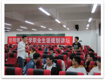 讲座开场:王伍涛同学首先简单地给大家介绍他的高中经验,第一年因为浮躁而高考失利的他,并没有因此放弃了自己,反而对自己的要求更加严格和苛刻,最终在第二年高考成绩上获得了一百多分提高。收到大学录取通知的他,在假期也不放松,做了很多兼职,积累了不少实践经验。短短的开场迅速拉近了嘉宾和同学之间的距离,并且让同学们看到了一个不畏困难,积极向上的王伍涛。