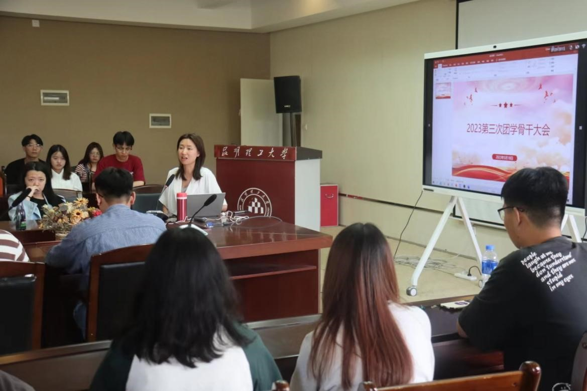 在交通楼A308教室召开第三次团学骨干大会。会议由团委书记赵云瑶主持,院团委、学生会、研究生会和青年者志愿协会各部门负责人参会。