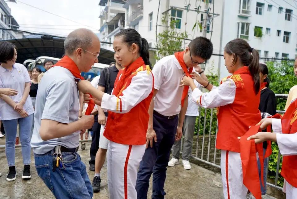 活动现场,全体实践队员佩戴小学生们亲手系上的红领巾,一同参加了学校的升国旗仪式;湾塘中心学校的学生代表进行“国旗下演讲”,对两校实践队表示感谢;该校的黄兴祥校长在活动讲话中讲述了建设“希望小屋”的目的和意义,并代表全体师生向两校表达了衷心感谢。