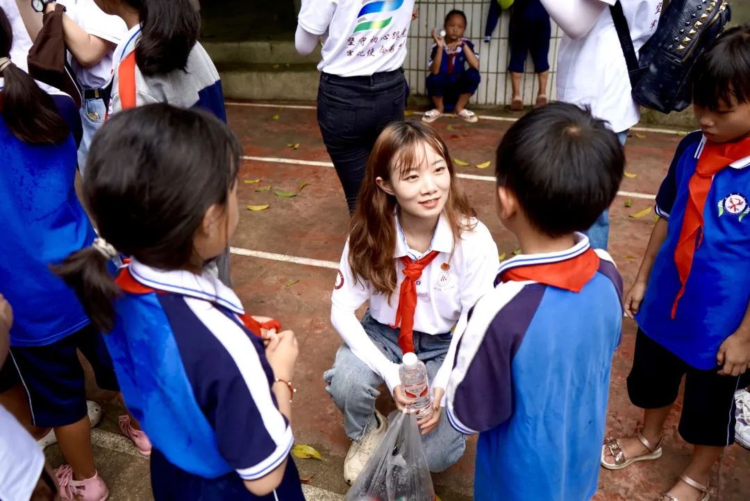 捐赠活动结束后,两校实践队师生带领湾塘中心学校的学生开展了跳绳、打篮球、唱歌等一系列活动,让孩子们感受到了来自实践队师生的爱与关怀。