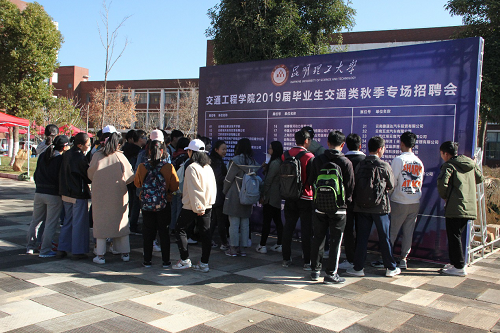 此次招聘会分为上、下午两个时段。上午时段,用人单位现场进行宣传和招聘,并和毕业生进行简单的沟通交流;下午时段,用人单位在交通学院的教室里进行详细的企业宣讲,与有意向同学进行深度沟通,完成笔试、面试等招聘环节。